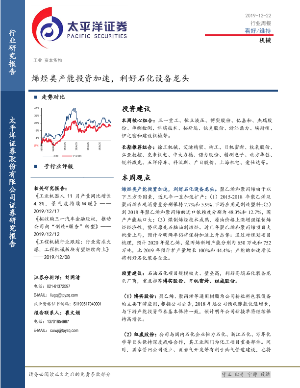 【太平洋证券】【20191222】机械行业周报:烯烃类产能投资加速,利好石化设备龙头-14页