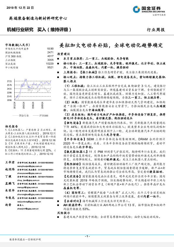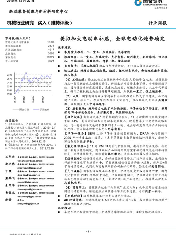 【国金证券】【20191222】20191222-国金证券-机械行业研究周报:美拟加大电动车补贴,全球电动化趋势确定-23页