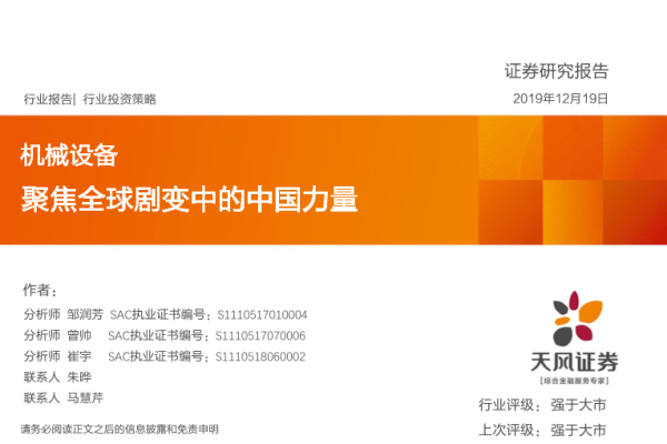 【天风证券】【20191219】机械设备行业投资策略:聚焦全球剧变中的中国力量-48页
