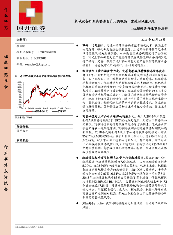 【国开证券】【20191223】机械设备行业商誉占资产比例较高,需关注减值风险-6页