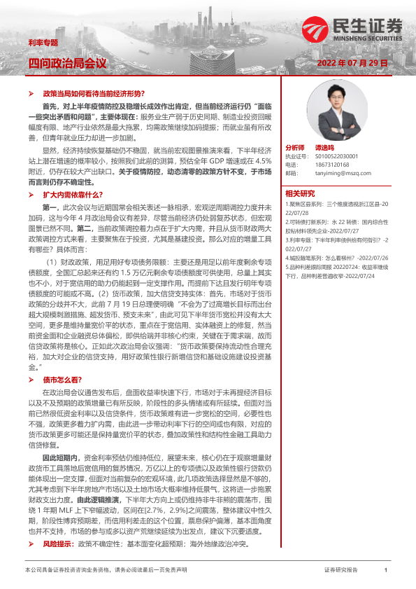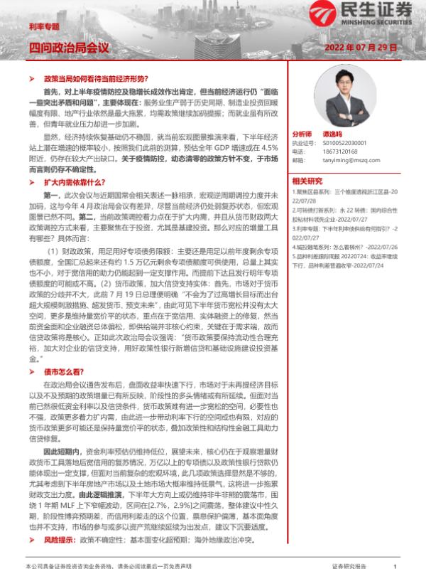 【民生证券】【20220729】利率专题:四问政治局会议-15页