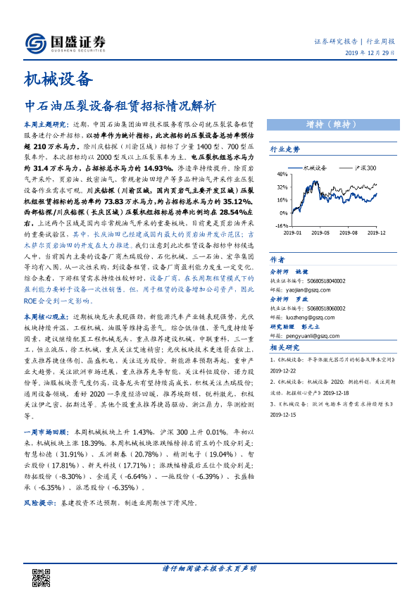 【国盛证券】【20191229】机械设备行业周报:中石油压裂设备租赁招标情况解析-10页