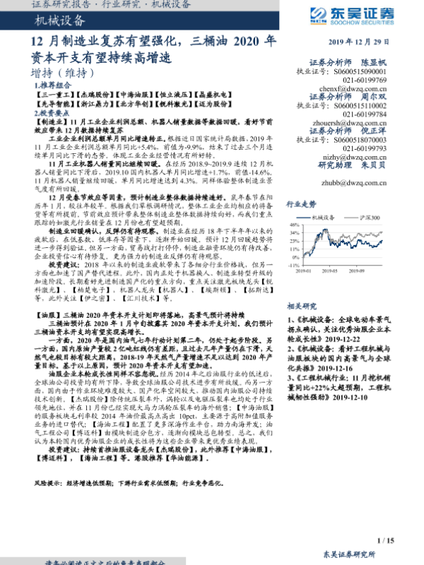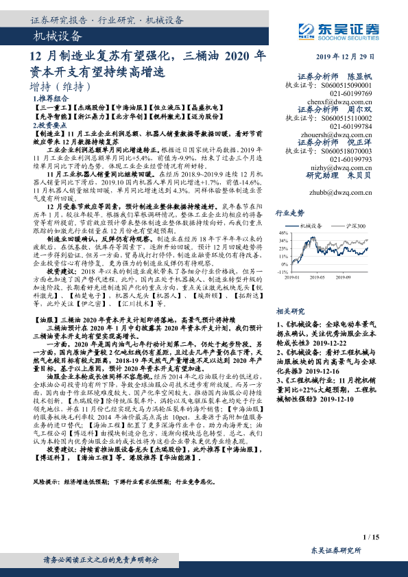 【东吴证券】【20191229】20191229-东吴证券-机械设备行业跟踪周报:12月制造业复苏有望强化,三桶油2020年资本开支有望持续高增速-14页