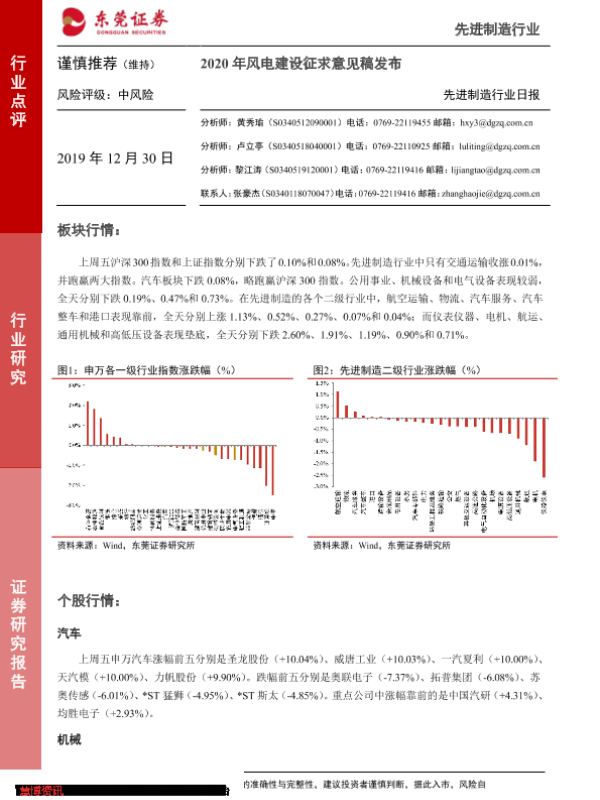 【东莞证券】【20191230】20191230-东莞证券-先进制造行业日报:2020年风电建设征求意见稿发布-4页