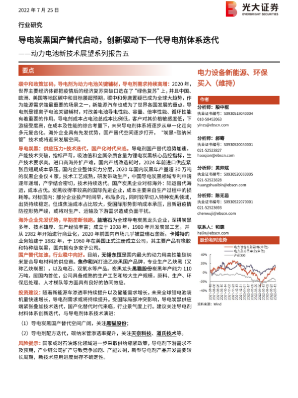 【光大证券】【20220725】动力电池新技术展望系列报告五:导电炭黑国产替代启动,创新驱动下一代导电剂体系迭代-18页