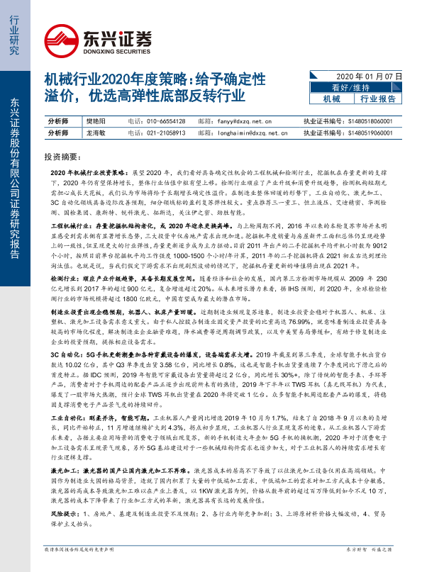 【东兴证券】【20200107】机械行业2020年度策略:给予确定性溢价,优选高弹性底部反转行业-35页