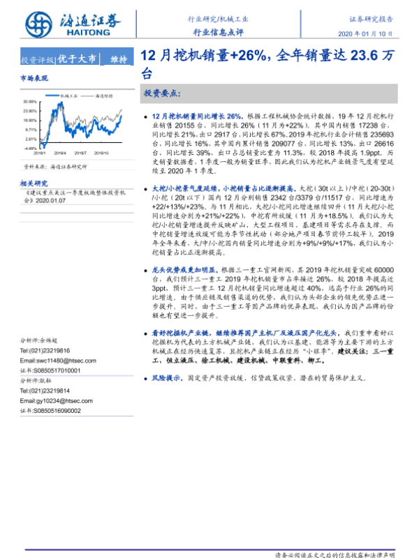 【海通证券】【20200110】20200110-海通证券-机械工业行业信息点评:12月挖机销量+26%,全年销量达23.6万台-4页