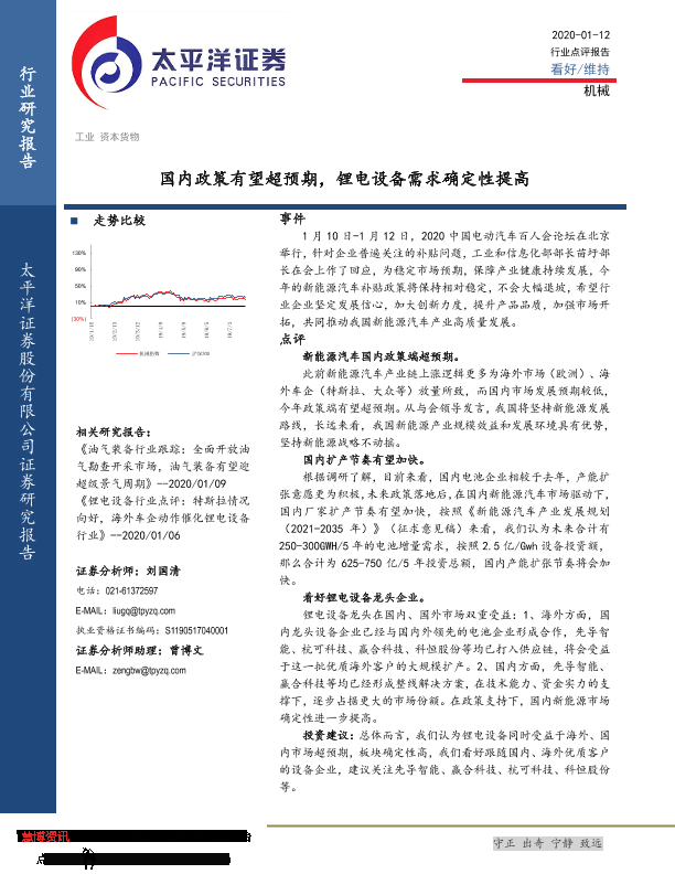 【太平洋证券】【20200112】国内政策有望超预期,锂电设备需求确定性提高-5页