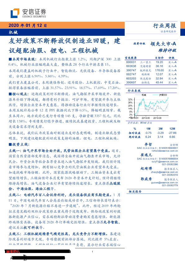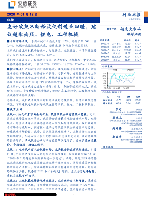 【安信证券】【20200112】20200112-安信证券-机械行业周报:友好政策不断释放促制造业回暖,建议超配油服、锂电、工程机械-28页