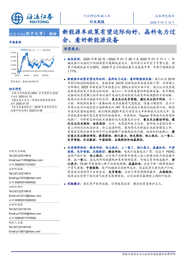 【海通证券】【20200112】20200112-海通证券-机械工业行业周报:新能源车政策有望边际向好,晶科电力过会,看好新能源设备-11页