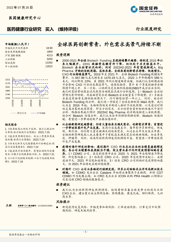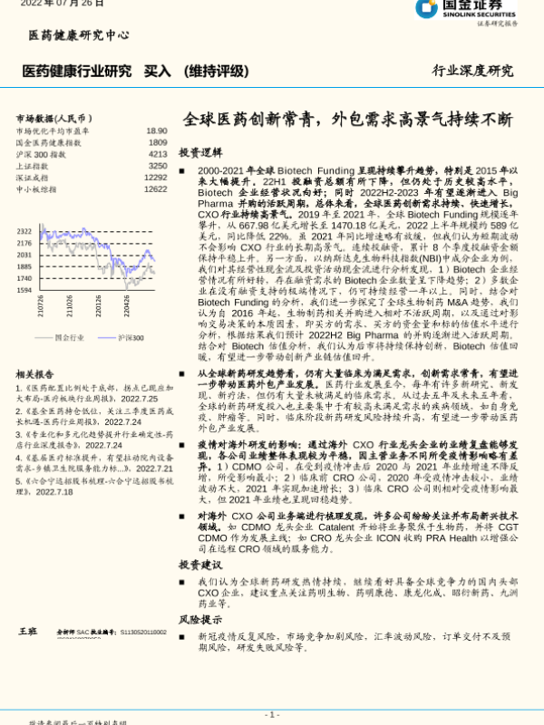 【国金证券】【20220724】医药健康行业深度研究:全球医药创新常青,外包需求高景气持续不断-48页