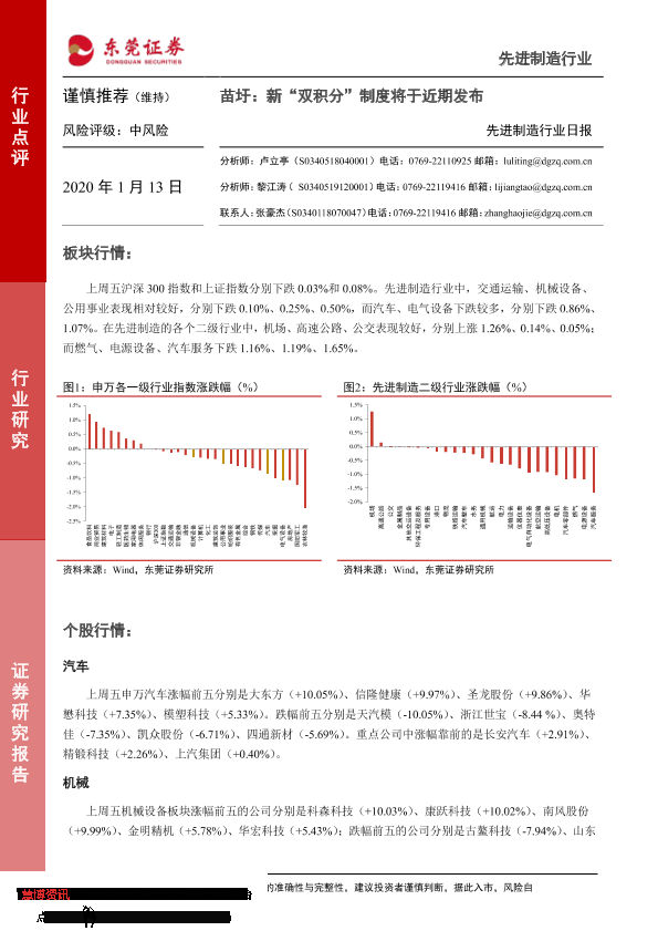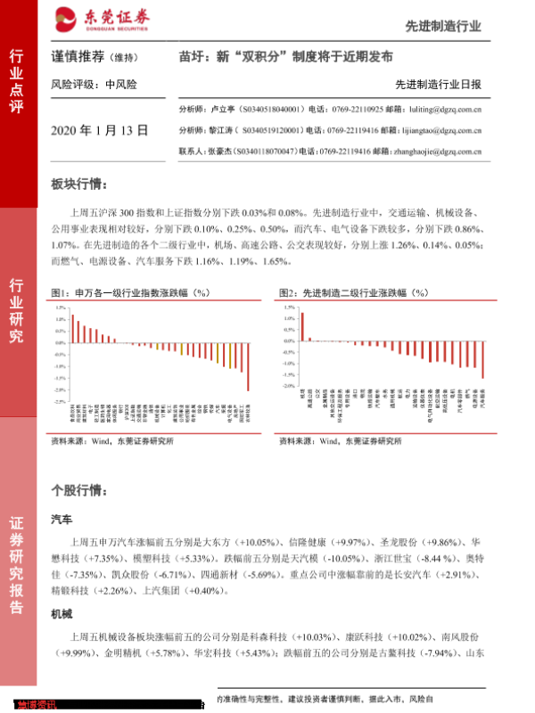 【东莞证券】【20200113】20200113-东莞证券-先进制造行业日报:苗圩,新“双积分”制度将于近期发布-4页