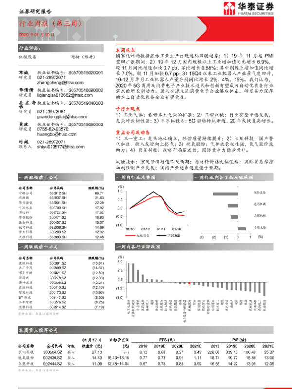 【华泰证券】【20200119】20200119-华泰证券-机械设备行业周报(第三周)-9页