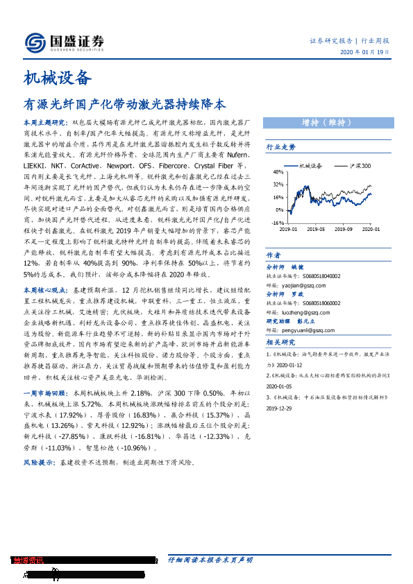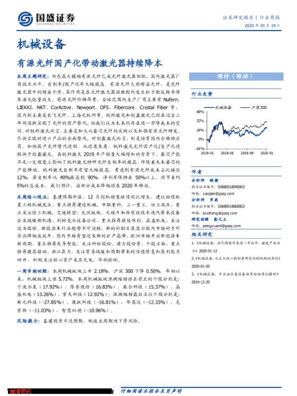 【国盛证券】【20200119】20200119-国盛证券-机械设备行业周报:有源光纤国产化带动激光器持续降本-17页