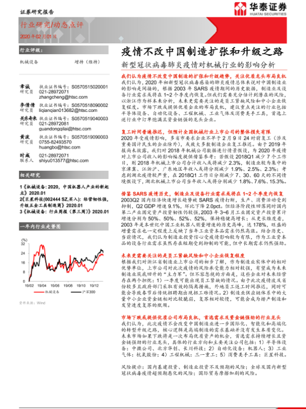【华泰证券】【20200201】新型冠状病毒肺炎疫情对机械行业的影响分析:疫情不改中国制造扩张和升级之路-4页