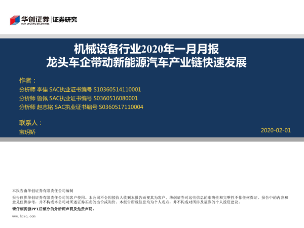 【华创证券】【20200201】机械设备行业2020年一月月报:龙头车企带动新能源汽车产业链快速发展-21页