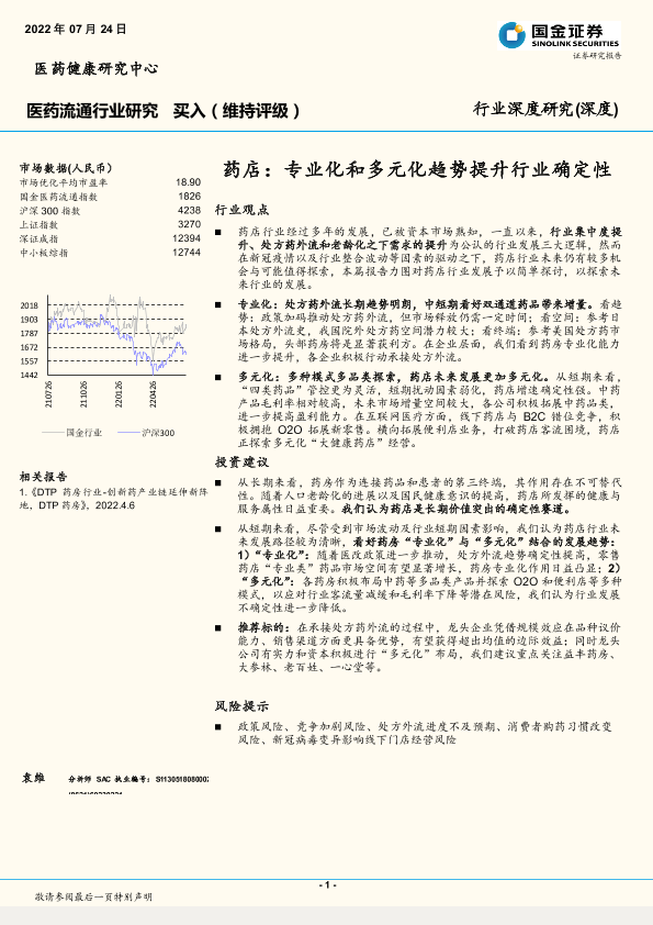 【国金证券】【20220724】医药流通行业深度研究:药店,专业化和多元化趋势提升行业确定性-18页