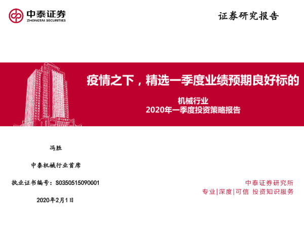 【中泰证券】【20200201】机械行业2020年一季度投资策略报告:疫情之下,精选一季度业绩预期良好标的-26页