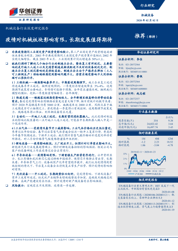 【华创证券】【20200202】20200202-华创证券-机械设备行业深度研究报告:疫情对机械板块影响有限,长期发展值得期待-13页