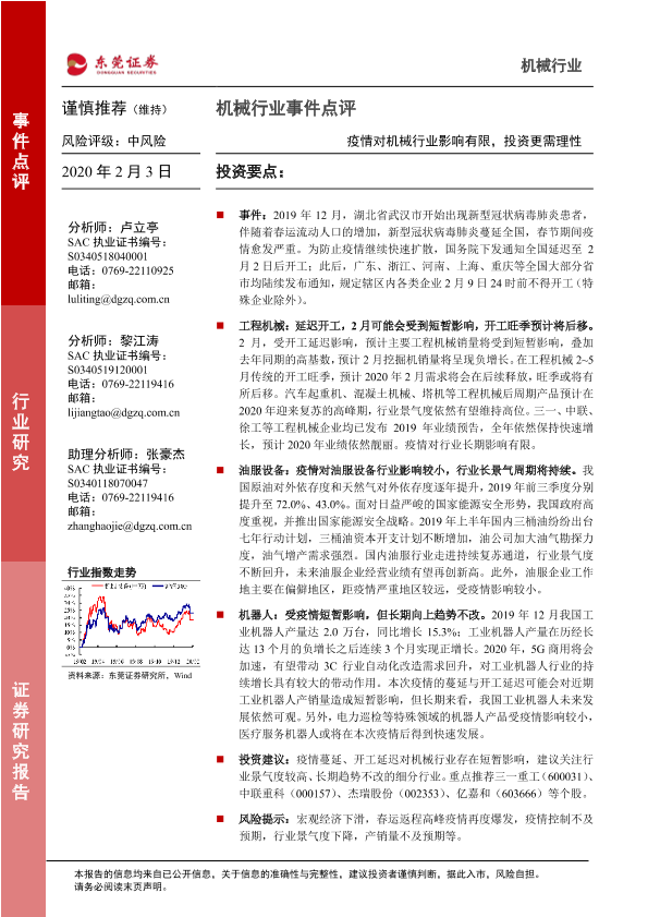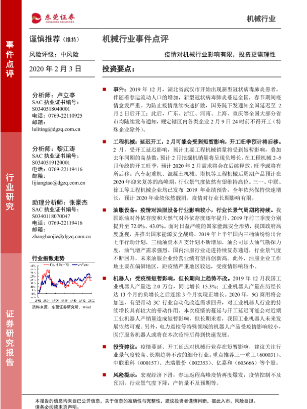 【东莞证券】【20200203】机械行业事件点评:疫情对机械行业影响有限,投资更需理性-2页