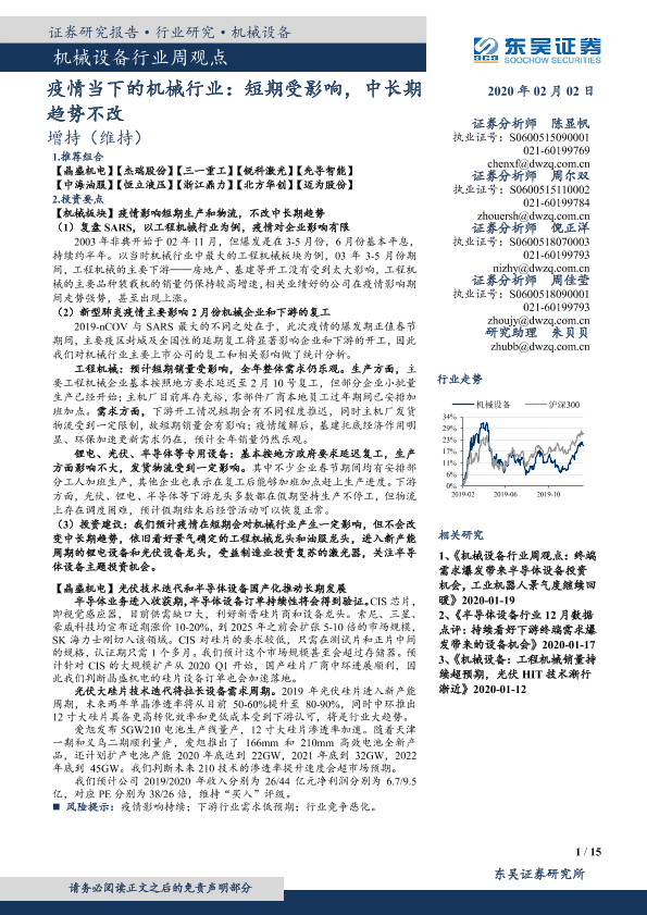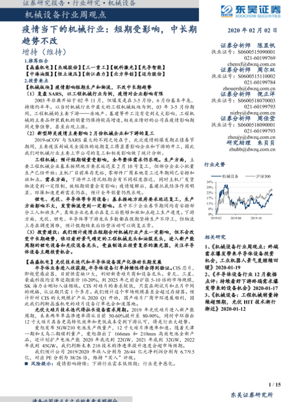 【东吴证券】【20200202】疫情当下的机械行业:短期受影响,中长期趋势不改-15页