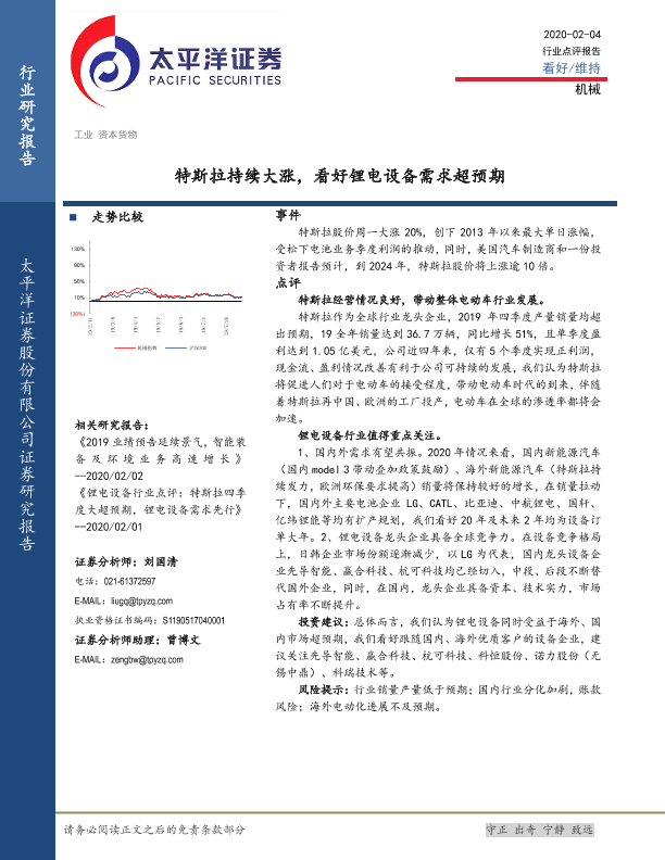 【太平洋证券】【20200204】特斯拉持续大涨,看好锂电设备需求超预期-4页