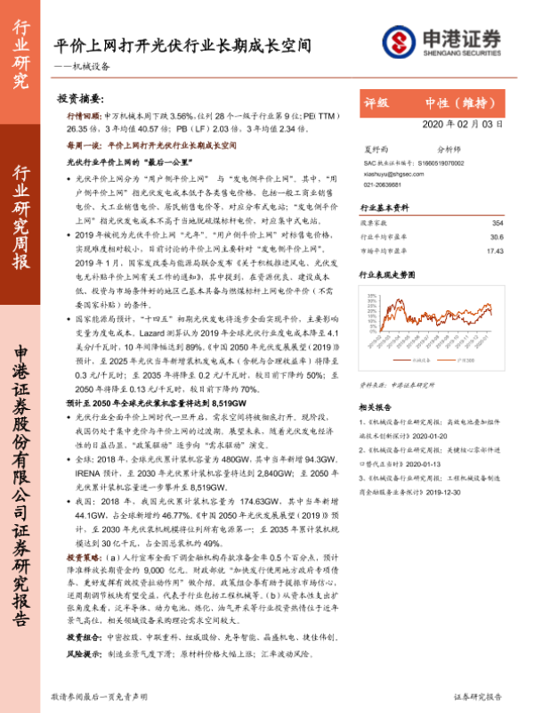 【申港证券】【20200203】20200203-申港证券-机械设备行业研究周报:平价上网打开光伏行业长期成长空间-16页