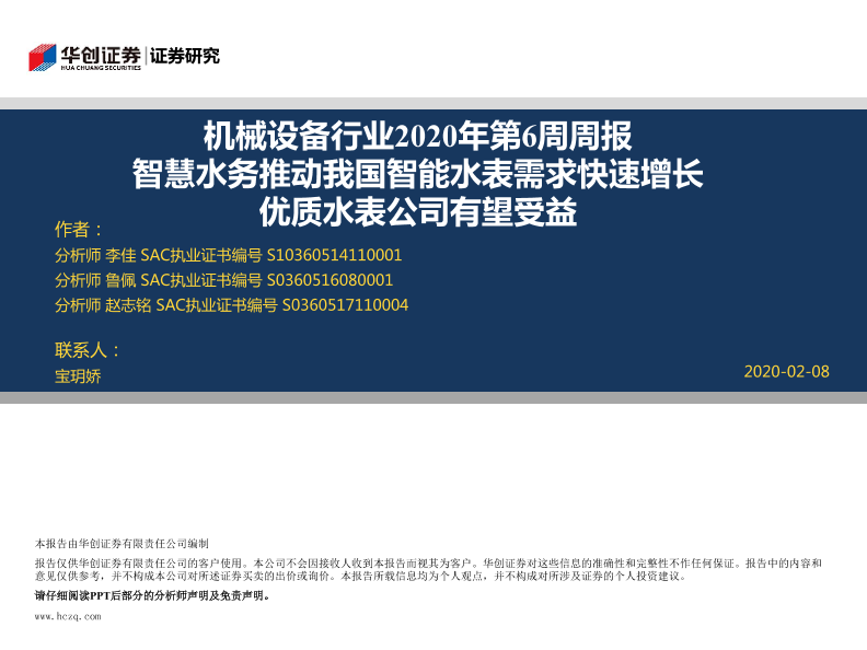 【华创证券】【20200208】机械设备行业2020年第6周周报:智慧水务推动我国智能水表需求快速增长 优质水表公司有望受益-22页