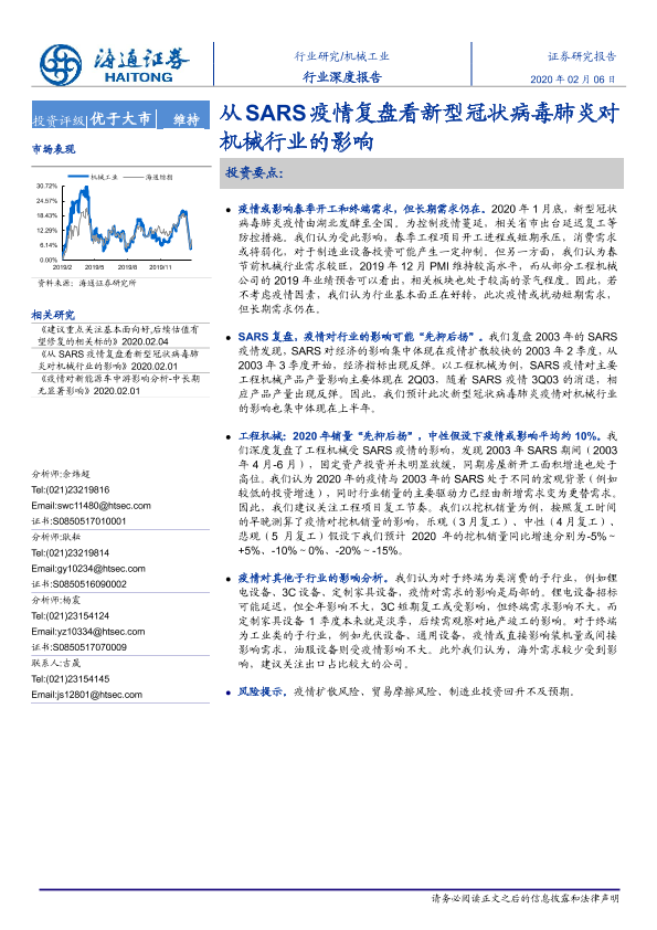 【海通证券】【20200206】20200206-海通证券-机械工业行业深度报告:从SARS疫情复盘看新型冠状病毒肺炎对机械行业的影响-23页