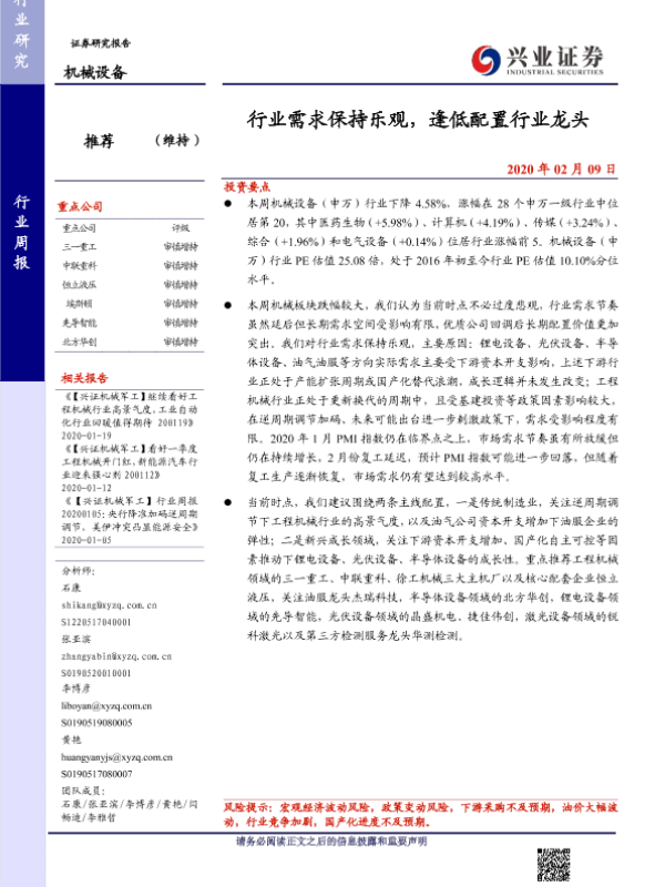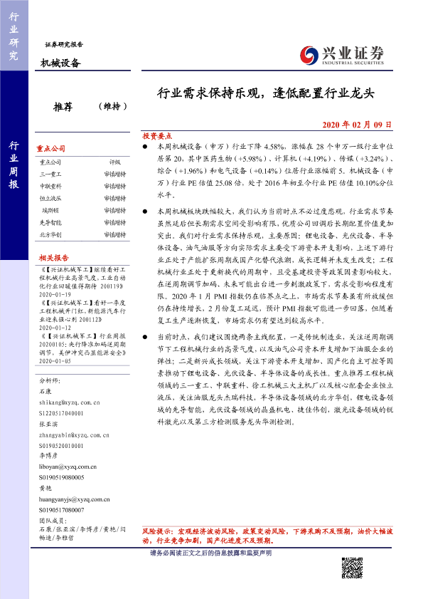 【兴业证券】【20200209】20200209-兴业证券-机械设备行业周报:行业需求保持乐观,逢低配置行业龙头-13页