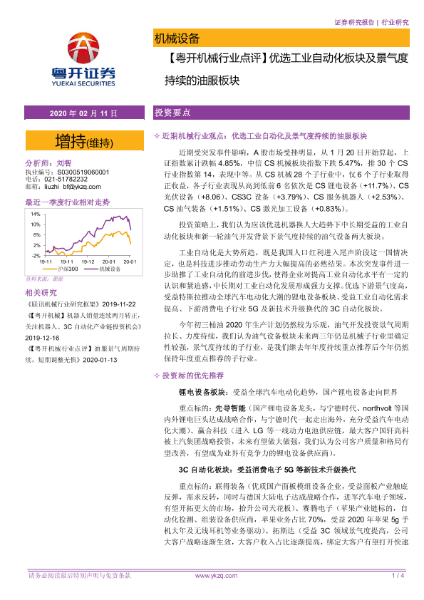 【粤开证券】【20200211】粤开机械行业点评:优选工业自动化板块及景气度持续的油服板块-4页