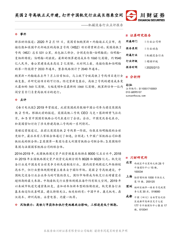 【川财证券】【20200213】英国2号高铁正式开建,打开中国轨交行业成长想象空间-2页