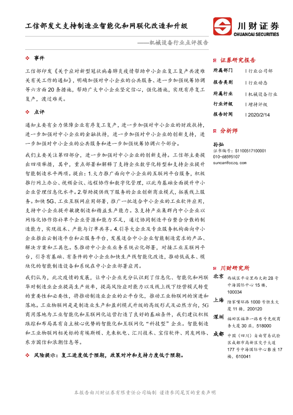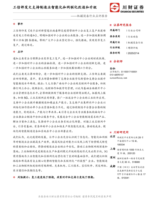 【川财证券】【20200214】机械设备行业点评报告:工信部发文支持制造业智能化和网联化改造和升级-2页
