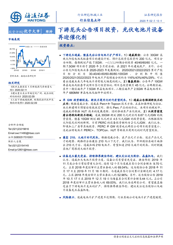 【海通证券】【20200213】机械工业行业信息点评:下游龙头公告项目投资,光伏电池片设备再迎催化剂-3页
