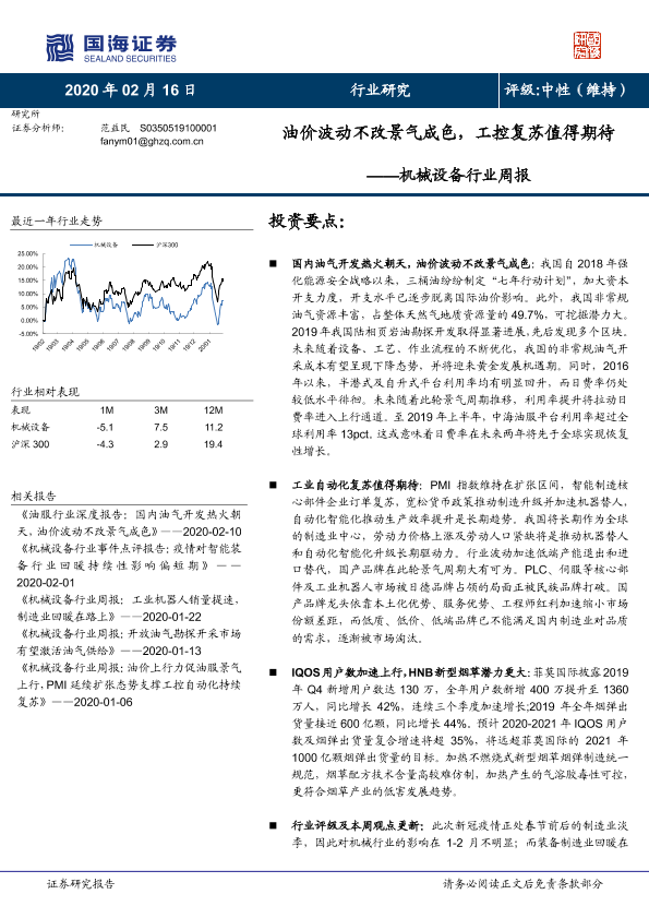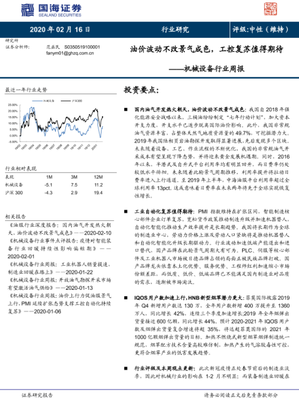 【国海证券】【20200216】机械设备行业周报:油价波动不改景气成色,工控复苏值得期待-16页