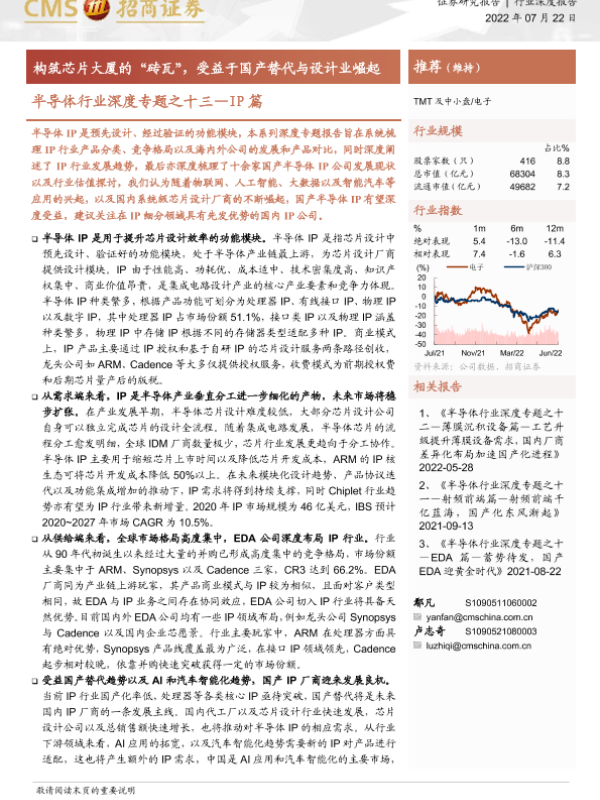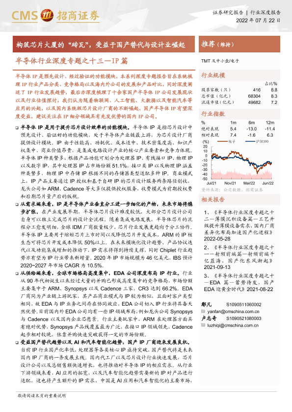 【海通证券】【20220722】半导体行业深度专题之十三_IP篇:构筑芯片大厦的“砖瓦”,受益于国产替代与设计业崛起-79页