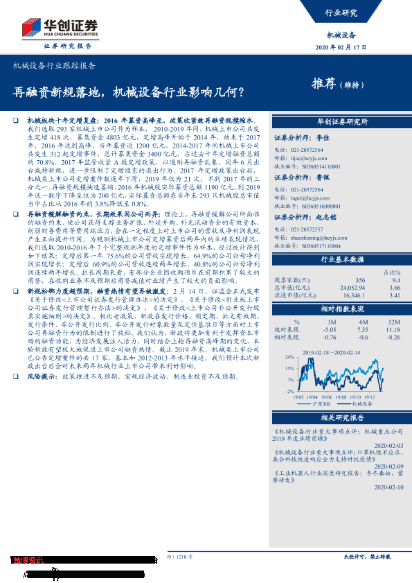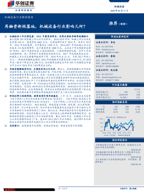 【华创证券】【20200217】20200217-华创证券-机械设备行业跟踪报告:再融资新规落地,机械设备行业影响几何?-11页