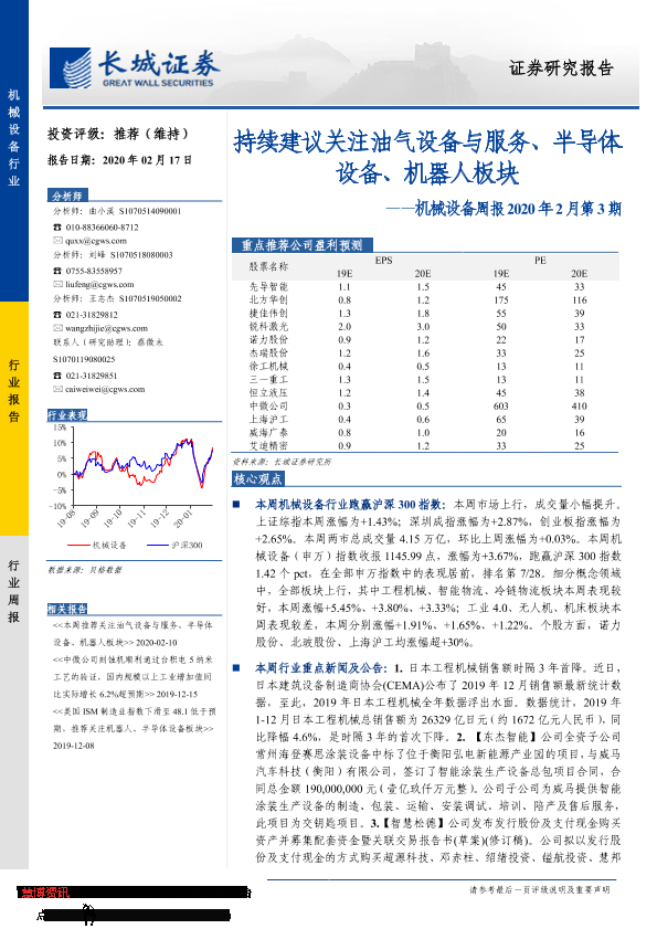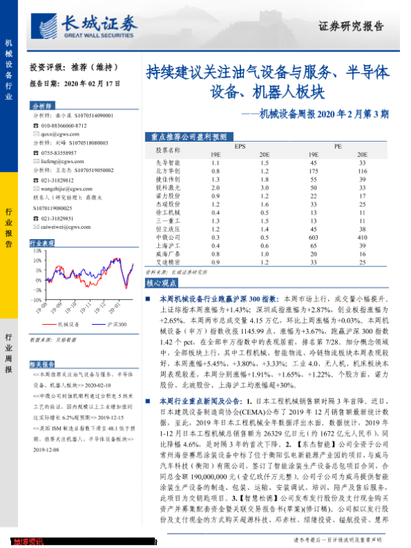 【长城证券】【20200217】机械设备周报2020年2月第3期:持续建议关注油气设备与服务、半导体设备、机器人板块-12页