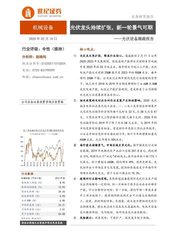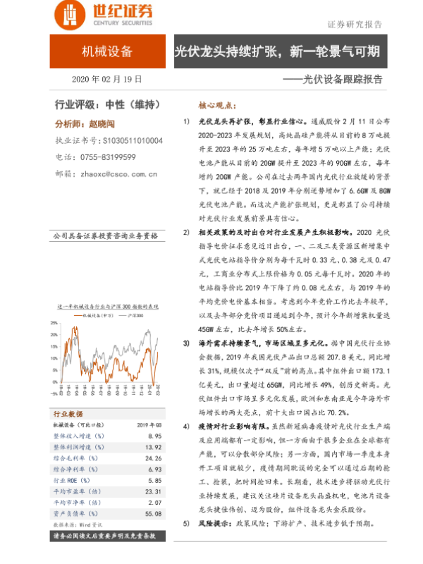 【世纪证券】【20200219】光伏设备跟踪报告:光伏龙头持续扩张,新一轮景气可期-3页