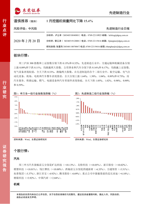 【东莞证券】【20200220】20200220-东莞证券-先进制造行业日报:1月挖掘机销量同比下降15.4%-4页