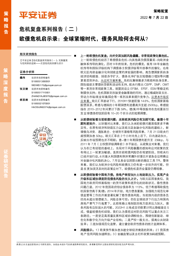 【平安证券】【20220722】危机复盘系列报告(二):欧债危机启示录,全球紧缩时代,债务风险何去何从?-24页
