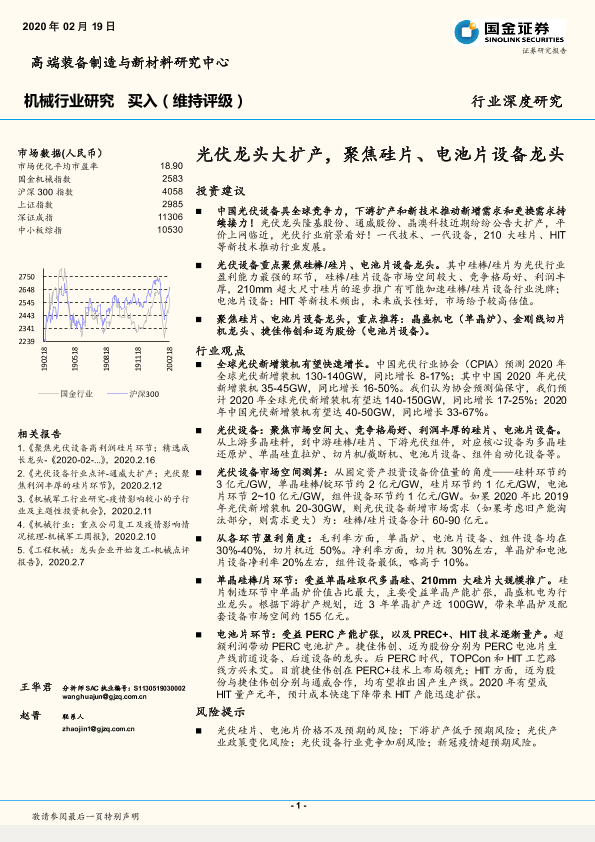 【国金证券】【20200219】机械行业研究:光伏龙头大扩产,聚焦硅片、电池片设备龙头-28页