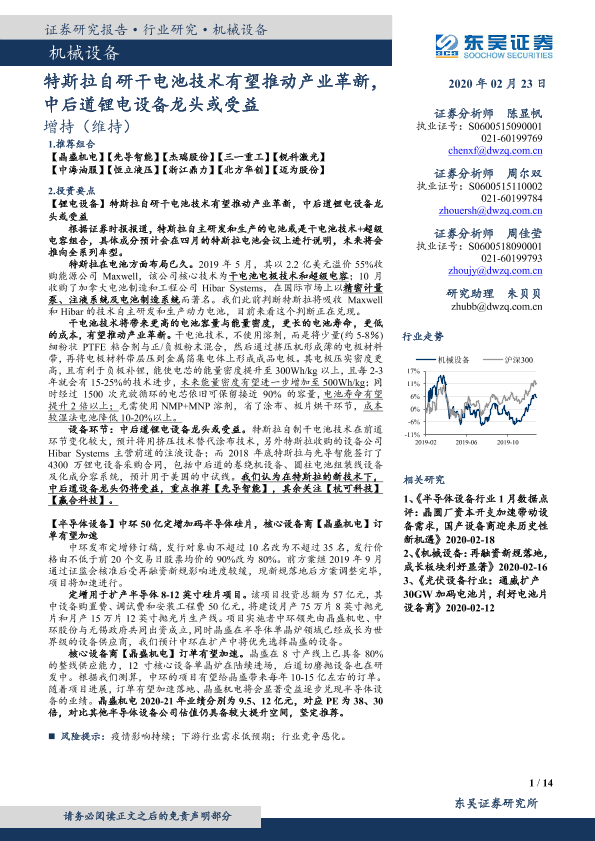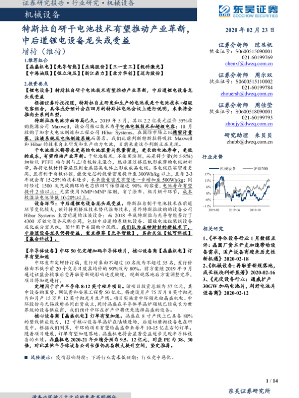 【东吴证券】【20200223】特斯拉自研干电池技术有望推动产业革新,中后道锂电设备龙头或受益-14页