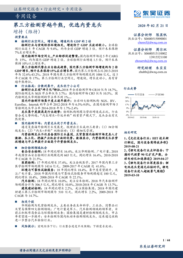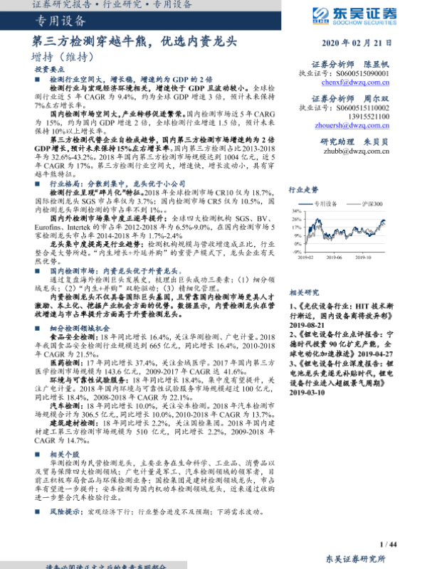 【东吴证券】【20200221】专用设备:第三方检测穿越牛熊,优选内资龙头-44页
