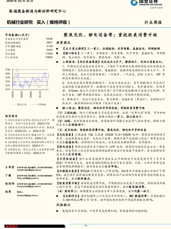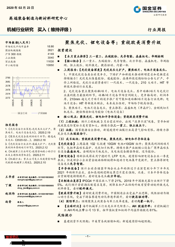 【国金证券】【20200223】机械行业研究:聚焦光伏、锂电设备等;重视欧美消费升级-20页