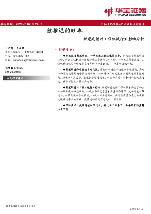 【华宝证券】【20200224】新冠疫情对工程机械行业影响分析:被推迟的旺季-5页