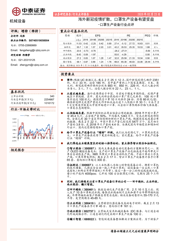 【中泰证券】【20200225】口罩生产设备行业点评:海外新冠疫情扩散,口罩生产设备有望受益-3页