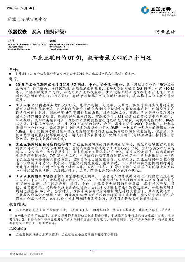 【国金证券】【20200226】仪器仪表:工业互联网的OT侧,投资者最关心的三个问题-8页