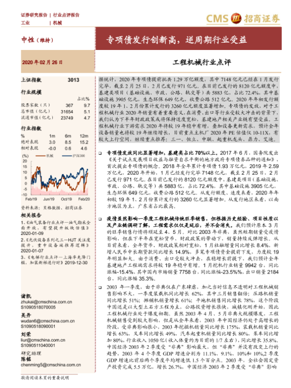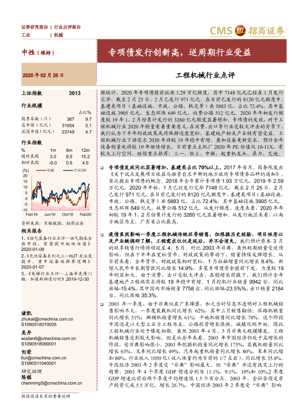 【海通证券】【20200226】工程机械行业点评:专项债发行创新高,逆周期行业受益-4页