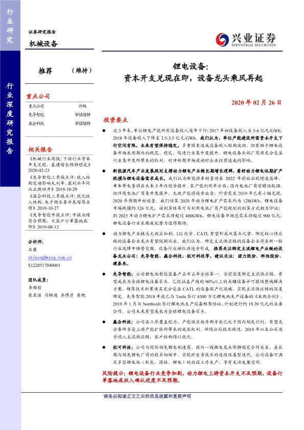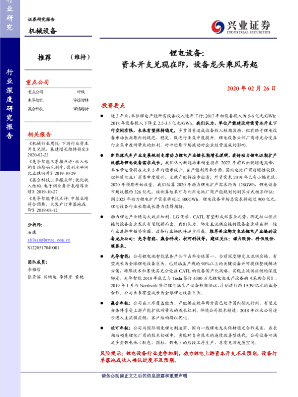 【兴业证券】【20200226】锂电设备:资本开支兑现在即,设备龙头乘风再起-23页